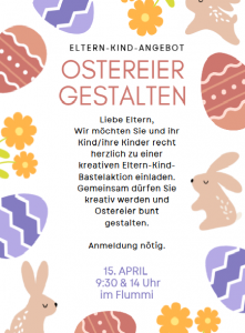 Wir möchten Sie und ihr Kind/ihre Kinder recht herzlich zu einer kreativen Eltern-Kind-Bastelaktion einladen.
